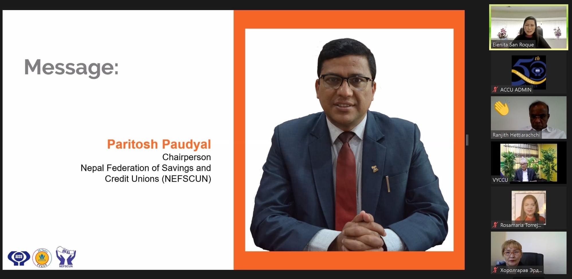 Association of Asian Confederation of Credit Unions (ACCU), collaboration with Nepal Federation of Savings and Credit Co-Operative Unions Ltd. (NEFSCUN) and VYCCU Savings and Credit Co-operative Ltd. (accredited ACCESS Branding by ACCU), hosted 2021 Virtual Credit Union Study Visit Program in Nepal on April 5, 2021. The 87 participants composed of Nepal, Sri Lanka, Republic of Korea, Thailand, Philippines, etc.